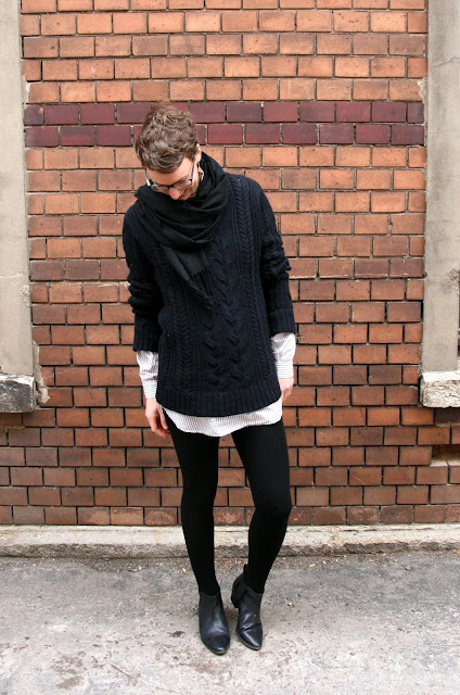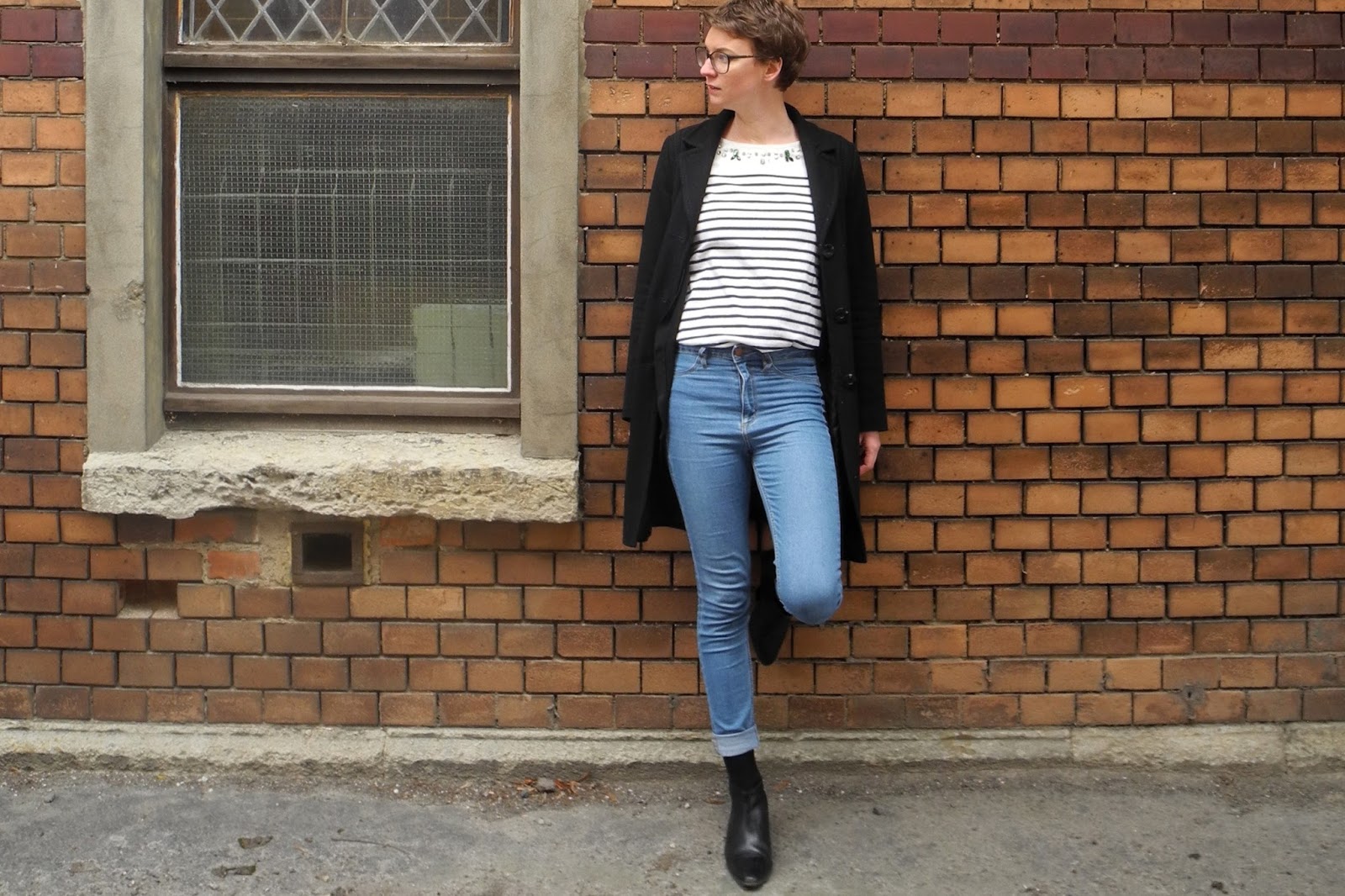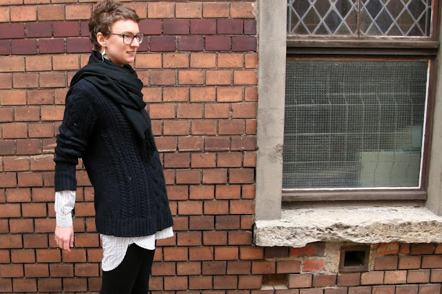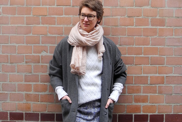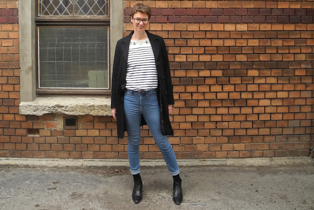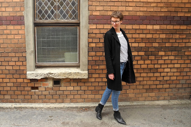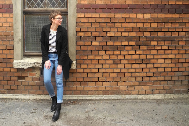 But now to my look! Bare legs! Yesses! My first bare legs of the year on April 4th - I think this is a new record of mine. I really wanted to wear a skirt today and I really did NOT want to wear tights. So bare legs it was. With my pencil skirt from H&M (from last Spring) I am wearing a maternity blouse (but noone can tell, can you?) and my very last "bad" purchase - last year in August when I already had decided to buy second hand or fair only, I went for a very last time to ZARA and got this jacket. I feel very good about my new shopping behaviour but I do not regret that I bought this jacket ;)